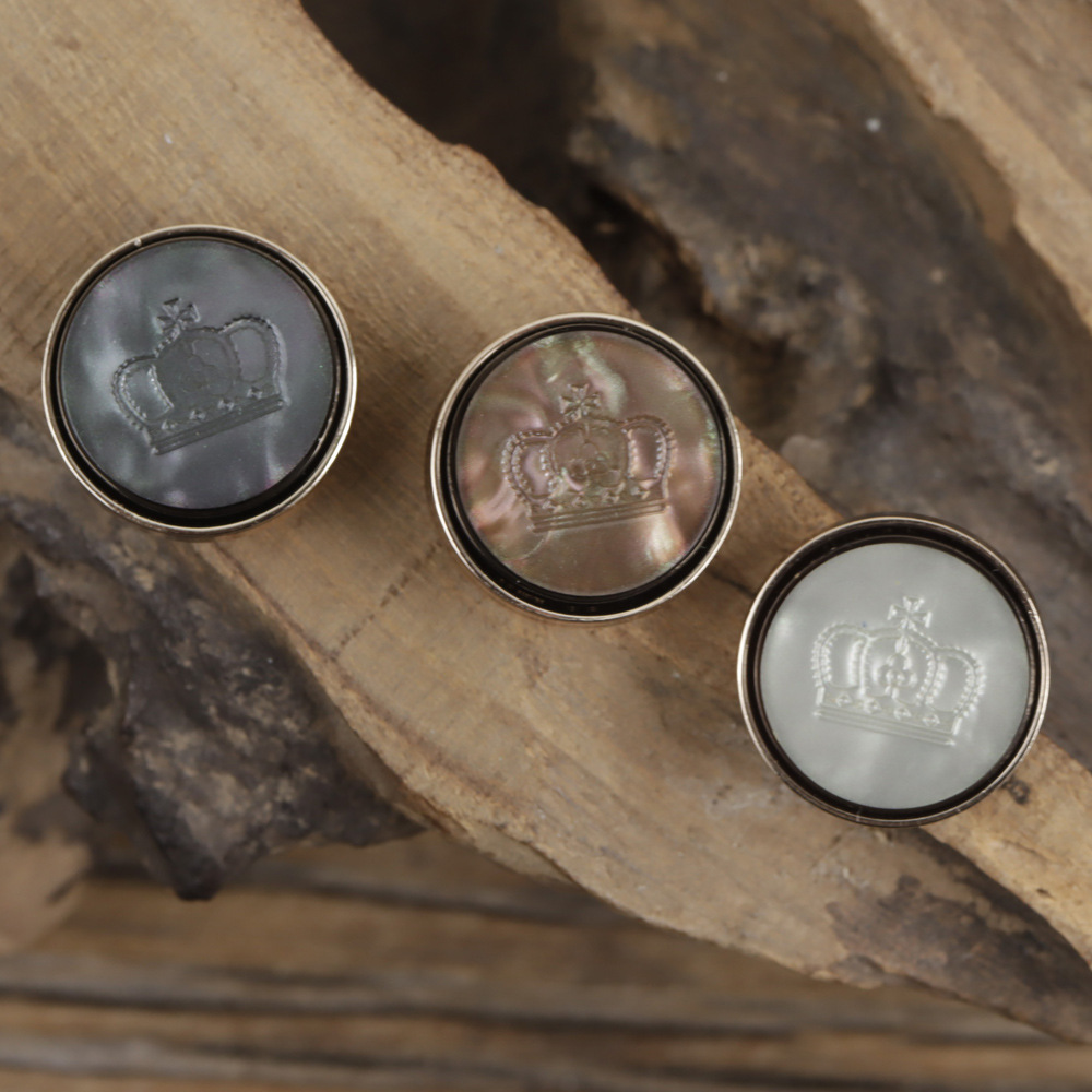 黒色のコーヒー色は貝殻の組み合わせのコートの風衣の双合の組み合わせのボタンの白色のクラウンの英倫風のボタンをまねます。