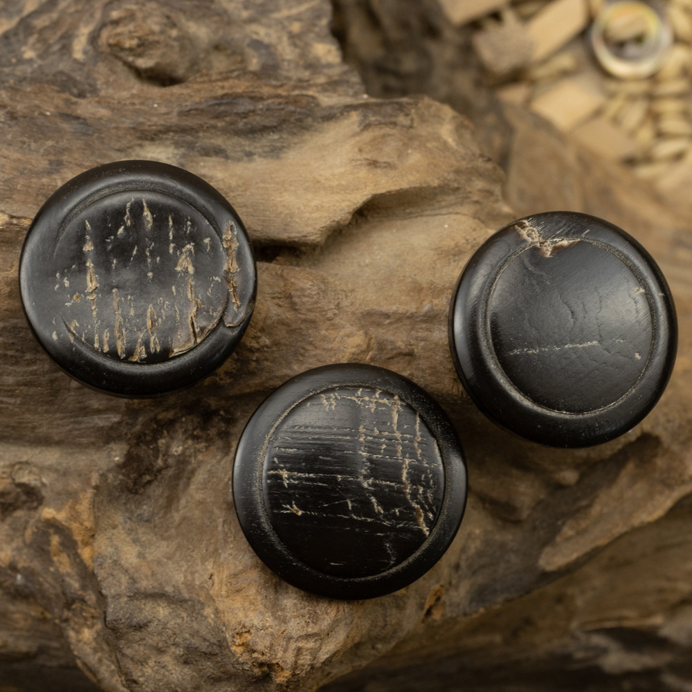レトロな黒い文芸シャツのカーディガンの真の牛の角のボタンのコーヒーの火は古い綿の麻のシャツのボタンのボタンを作ります。