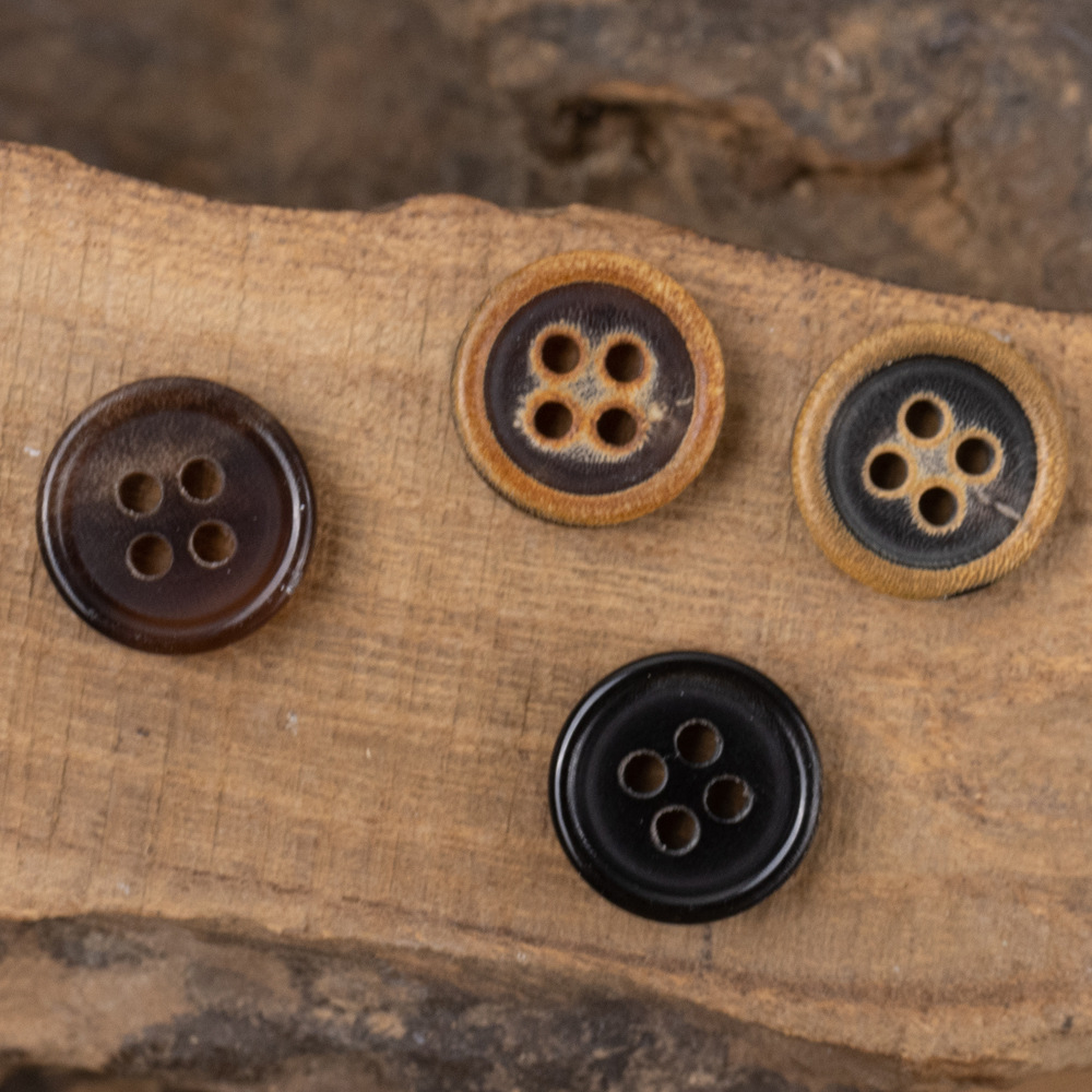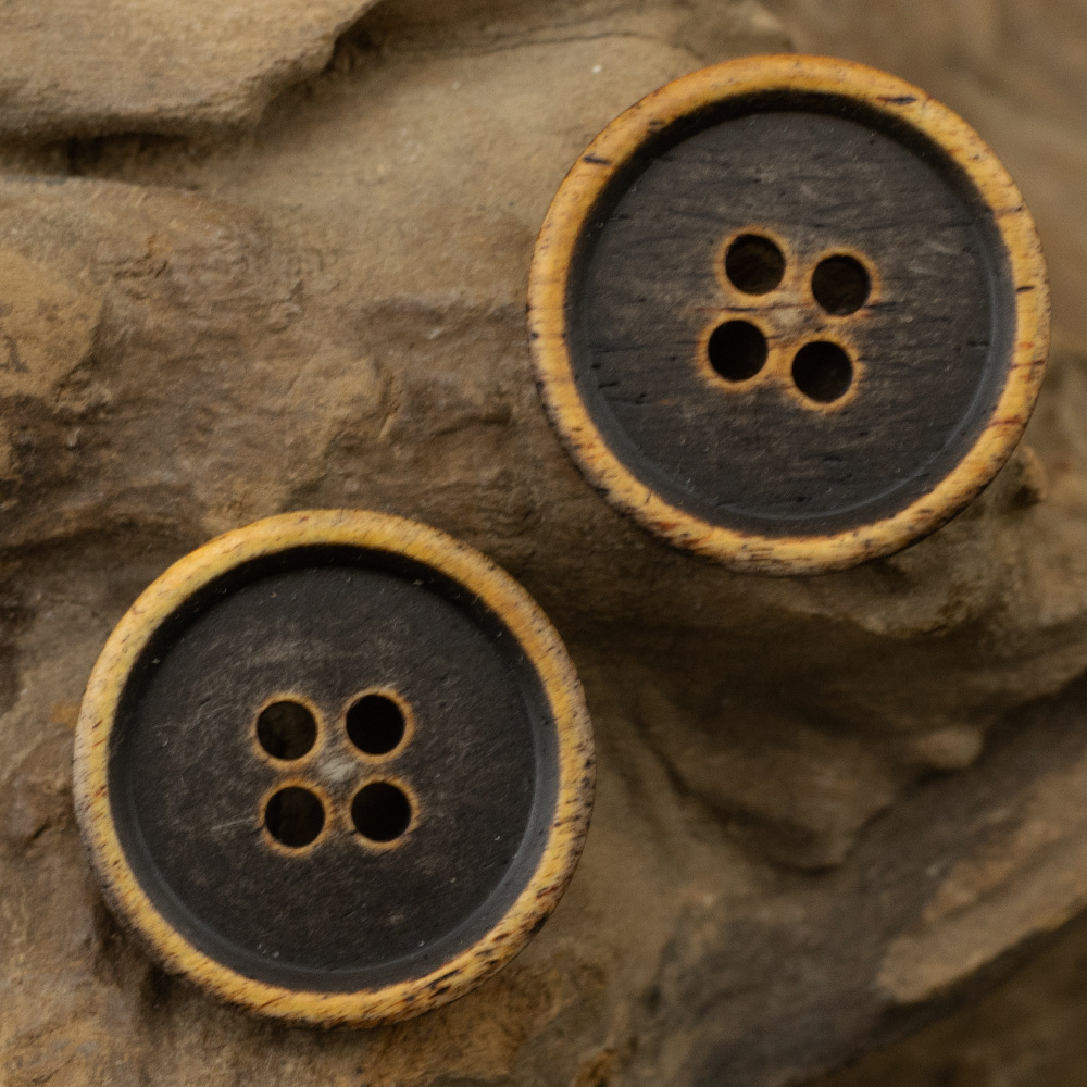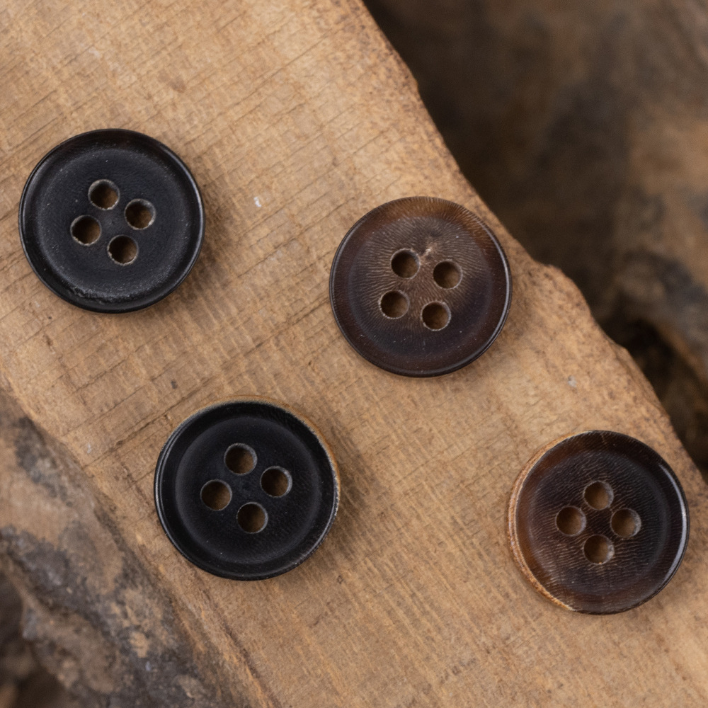 不规则な本物の牛の角のレトロなシャツのボタンの火の焦げた黄色の绵麻のカーディガンのトレンチコートの洋服のボタンのボタン
