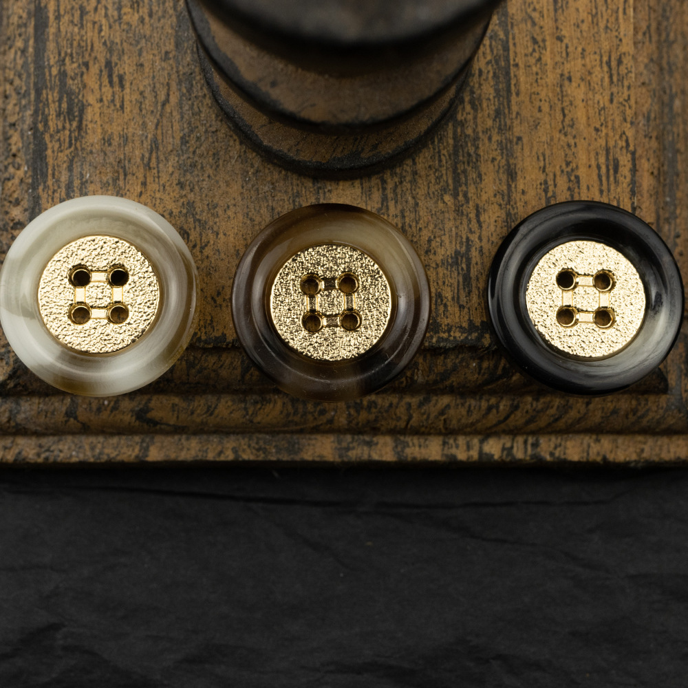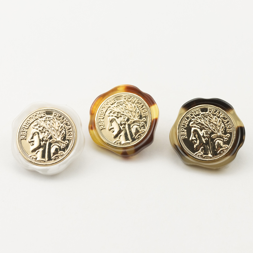 四眼黒色コーヒー色の毛はコートのカーディガン樹脂の組み合わせの金属ボタンのボタンのボタンです。