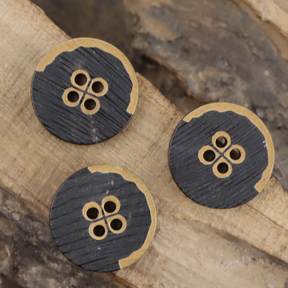 フラットコーヒー色黒波紋シャツ洋服風衣樹脂ボタンボタン黒毛コートボタン