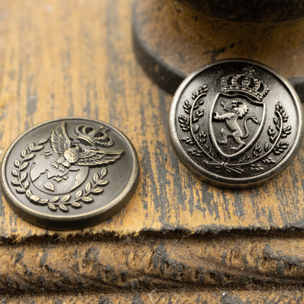 日本式の金色のカジュアルな高定のスーツのコートの金属ボタンのタカのライオンのセーターの工装のデニムのボタン