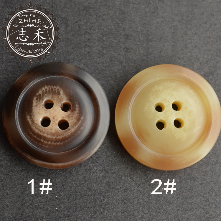 志禾の現物の濃いコーヒー色の棒の花は牛の角の樹脂のボタンのスーツの風衣のコートのつや消しの樹脂のボタンをまねます。