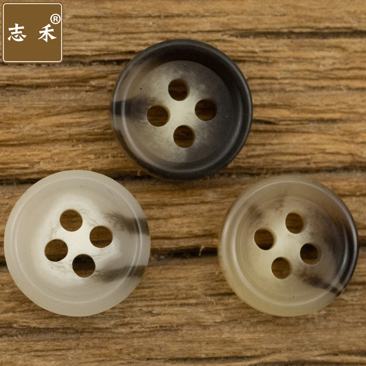 志禾現物亮面黒コーヒー色模様樹脂ボタン