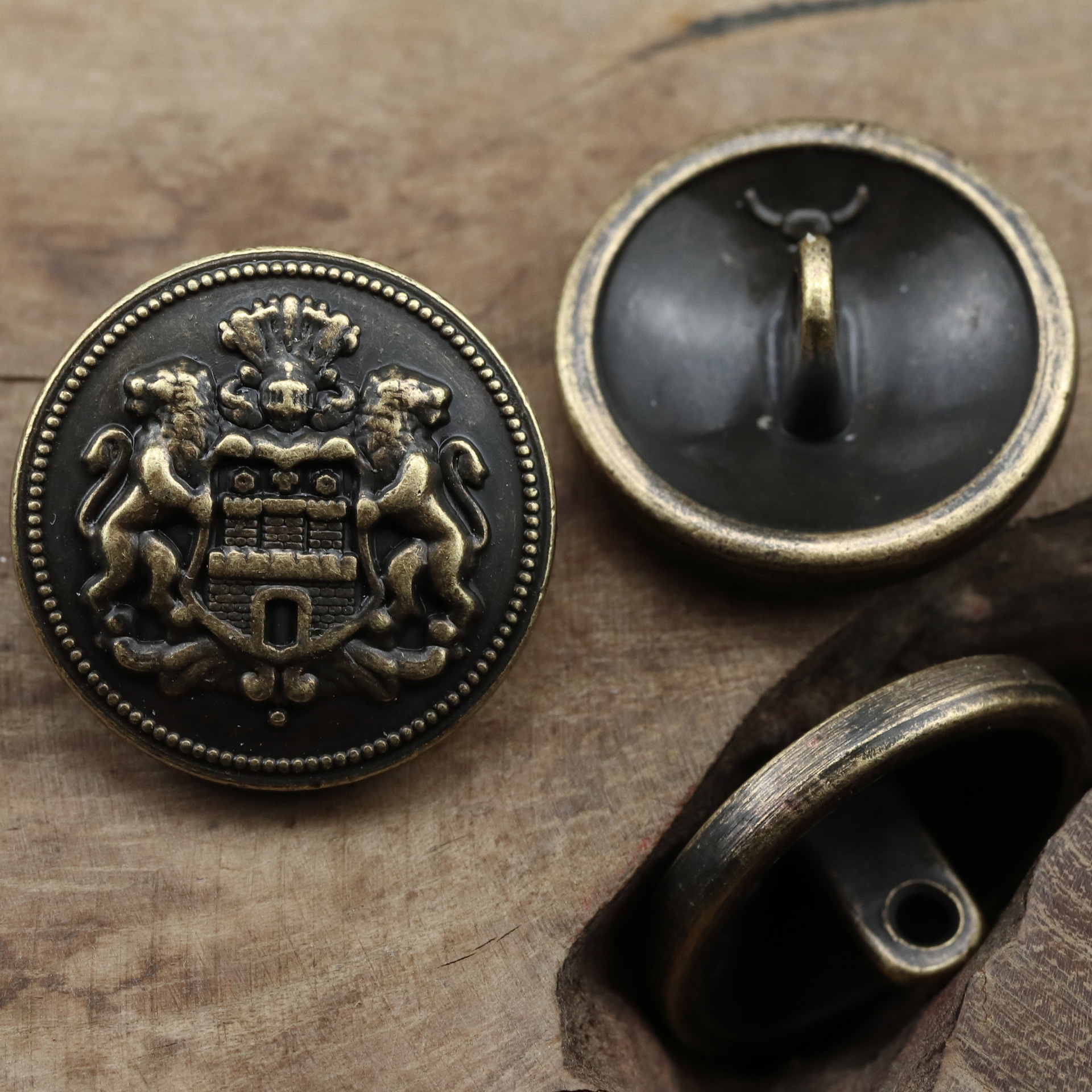 青古銅色は古いレトロな王冠の双獅子英倫風スーツの金属ボタンのカーディガンのセーターのボタンをまねます。