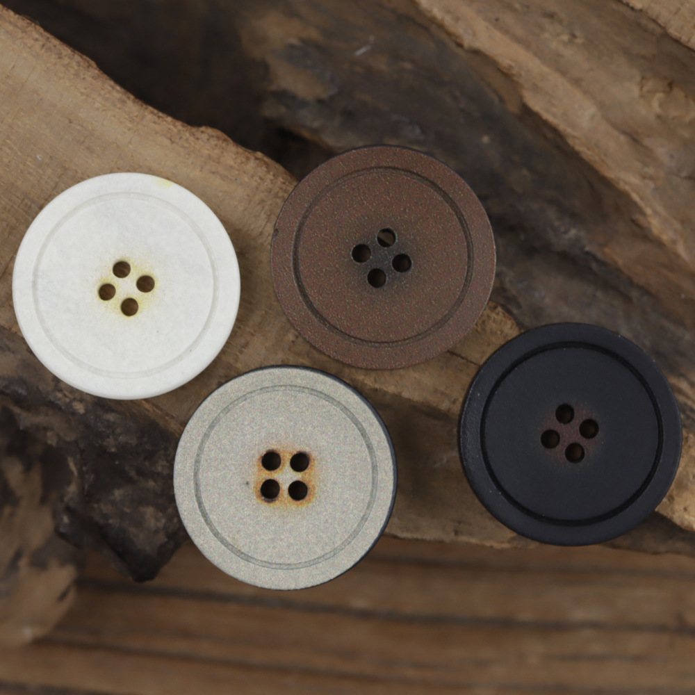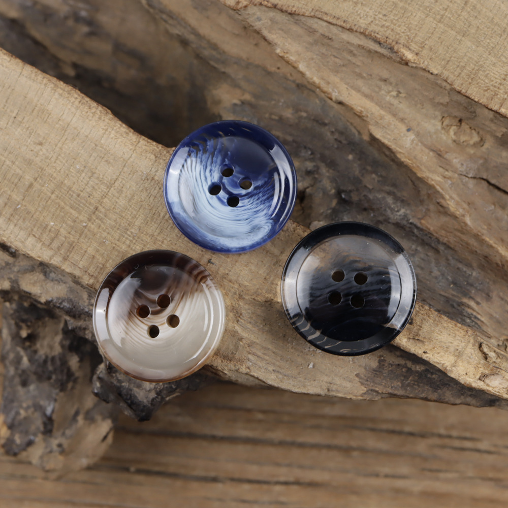 志禾のつや消しの点線の赤い茶色のコーヒーの濃い青と黒い灰色の木目の色の四眼の樹脂の風衣のコートのカシミヤのボタン