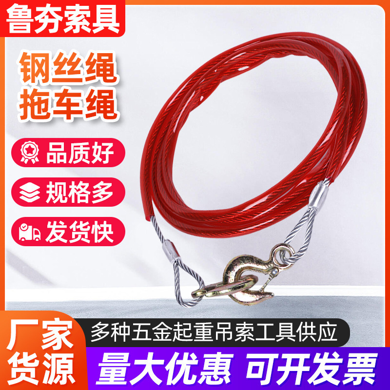 4メートルワイヤー牽引ロープ自動車牽引ロープ無継手ワイヤー牽引ロープ緊急トレーラー自動車牽引ロープ