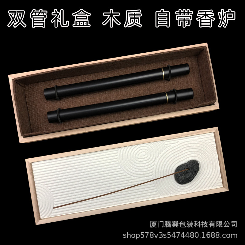 人気スポット木製線香ギフトボックス双管天地蓋香箱公版通用21センチ線香包装