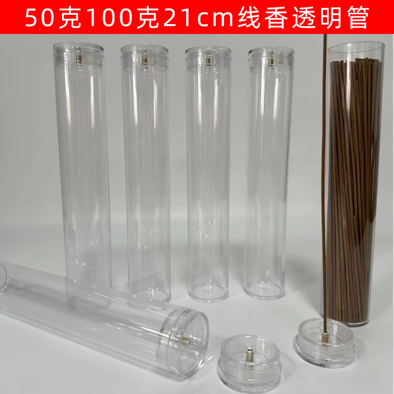 新しいプラスチックの線香透明管50グラム100gは21センチの香筒を持っています。