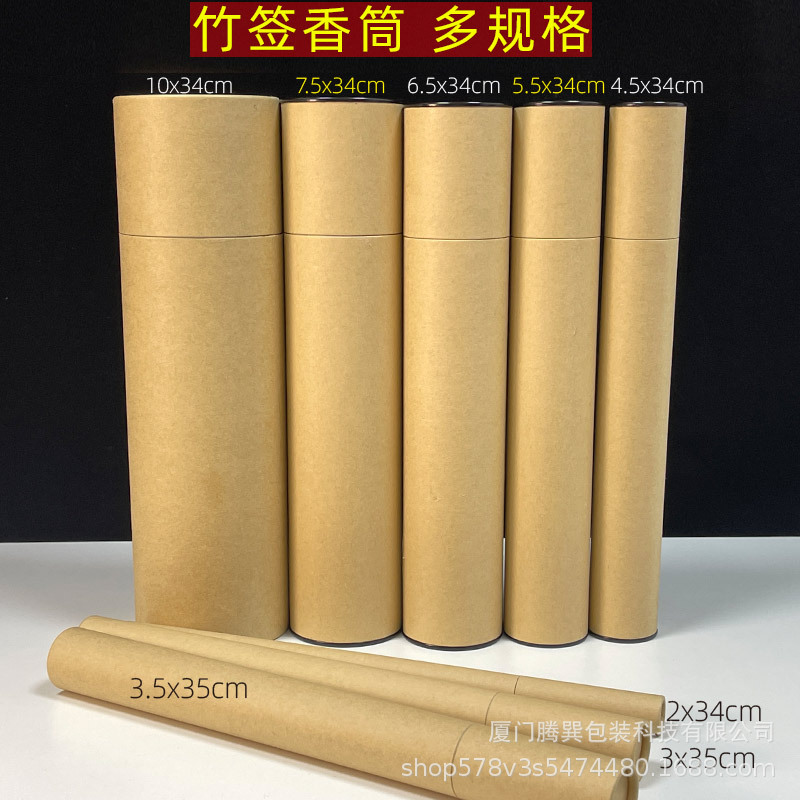 新しい竹串香牛皮紙筒バイバイ香缶円筒装香空箱竹芯香管32.5-39.5大サイズ