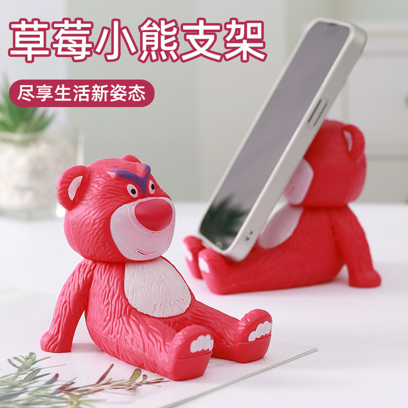 アニメかわいいいちご熊棚デスクトップスタンドプラスチック置物怠け者スタンド平板追劇スタンド