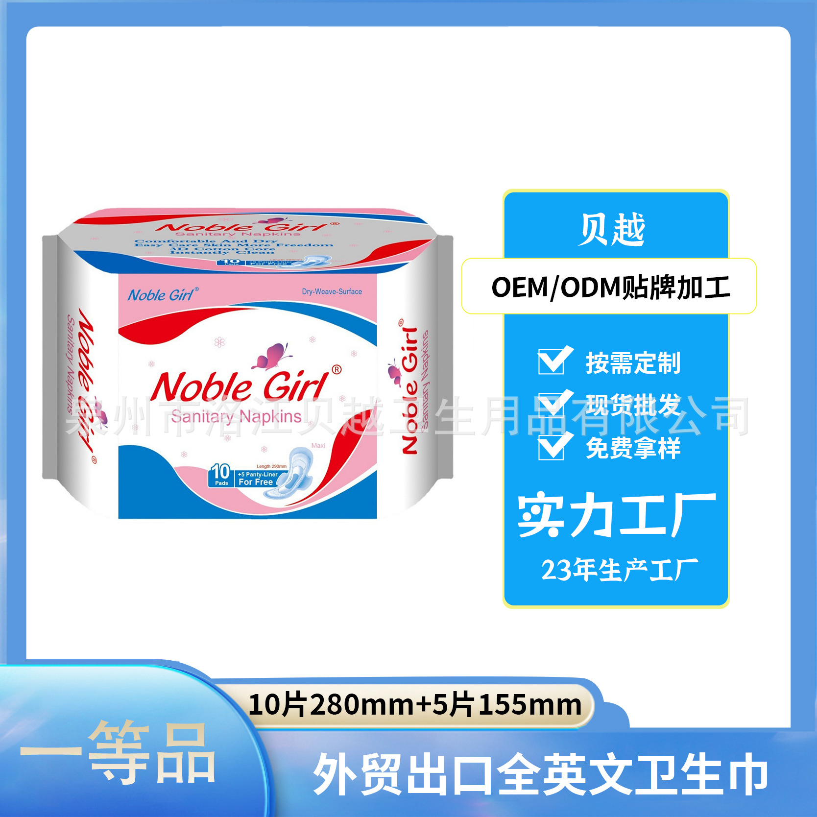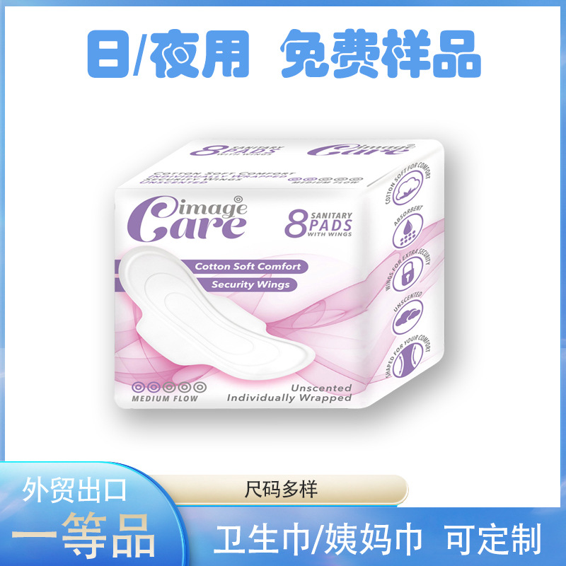 英語対応の電子商取引向け輸出用女性用生理用ナプキン、昼夜兼用280mm、使い捨て、OEM加工、卸売