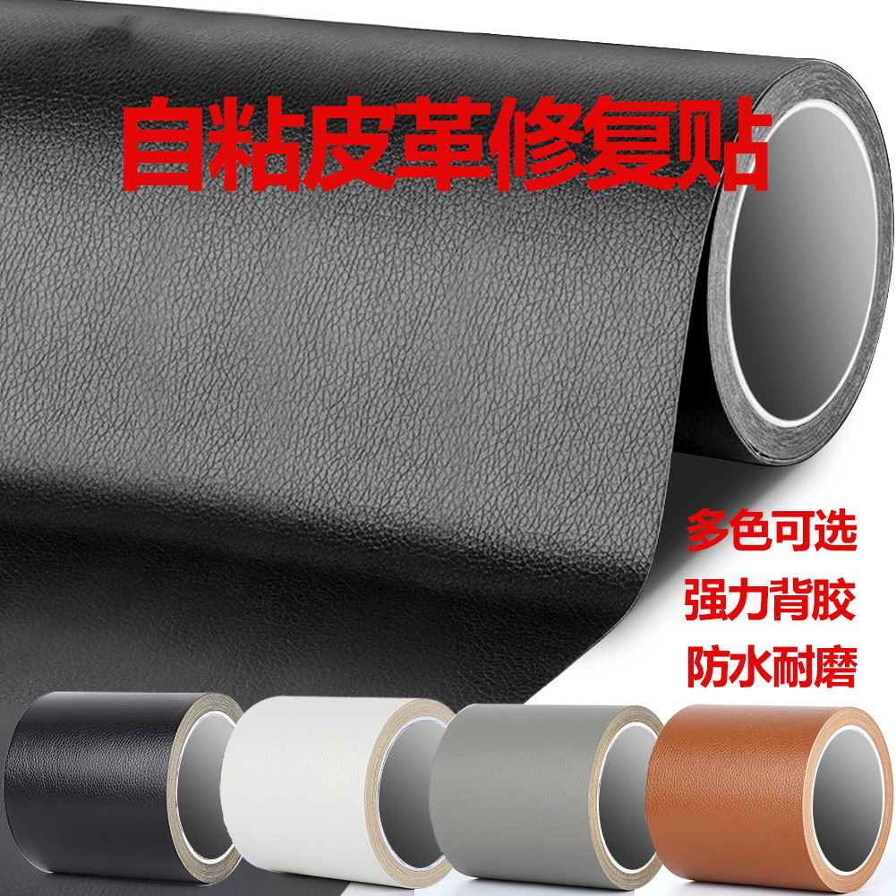 Pu自己接着革修理補助ソファー修復強力バックゴムベッドの上の椅子に革のような布のテープを貼っています。