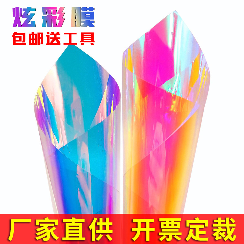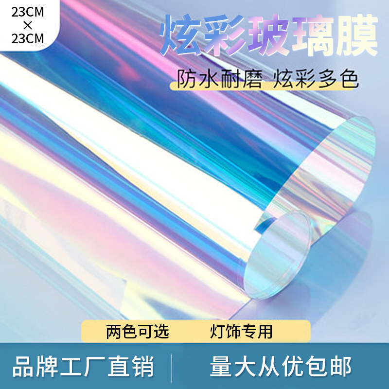メーカー卸売りイルミネーション専用の小型カラーフィルム虹グラデーションカラフルなガラスシール幻彩レーザー紙