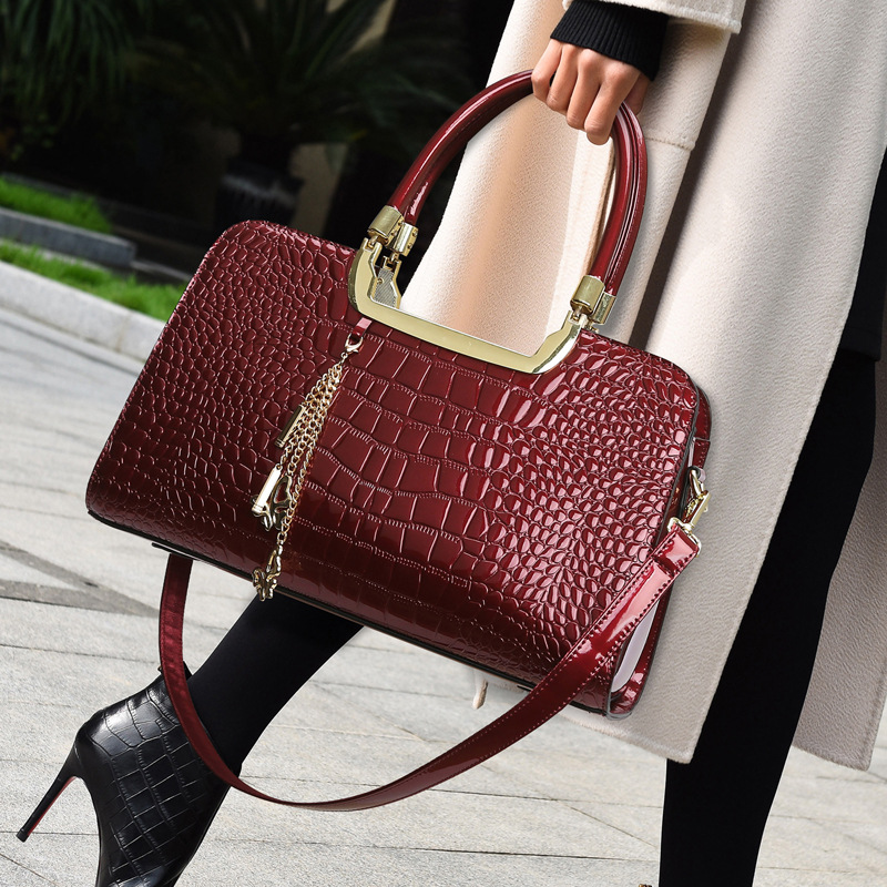 クロスボーダーレディースハンドバッグファッション高级感ワニ柄ショルダーバッグ新作売れ筋エナメルショルダーバッグ大容量