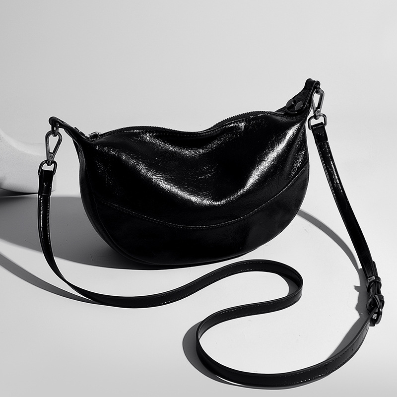 本革斜めショルダーバッグ2024新型フランスの小衆牛角包女性の質感の柔らかい皮のカジュアルな百合ギョーザのカバンのシングル肩