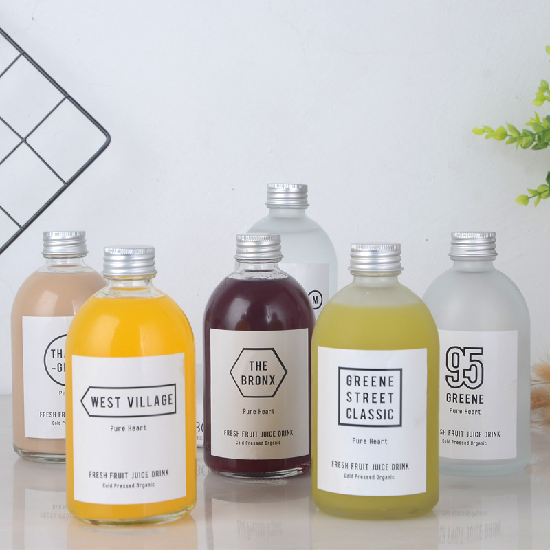 350 ミリリットルつや消しミルクティーボトル飲料ボトル果実酒ボトルアルミ蓋コーヒーボトルライト断食果物と野菜ジュースミニマリストガラス