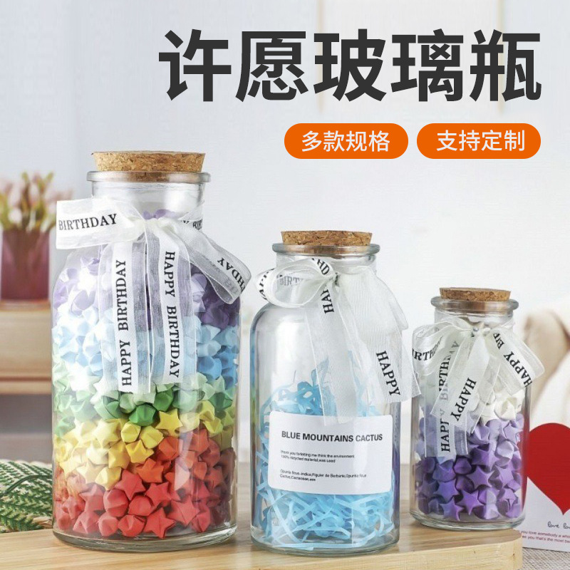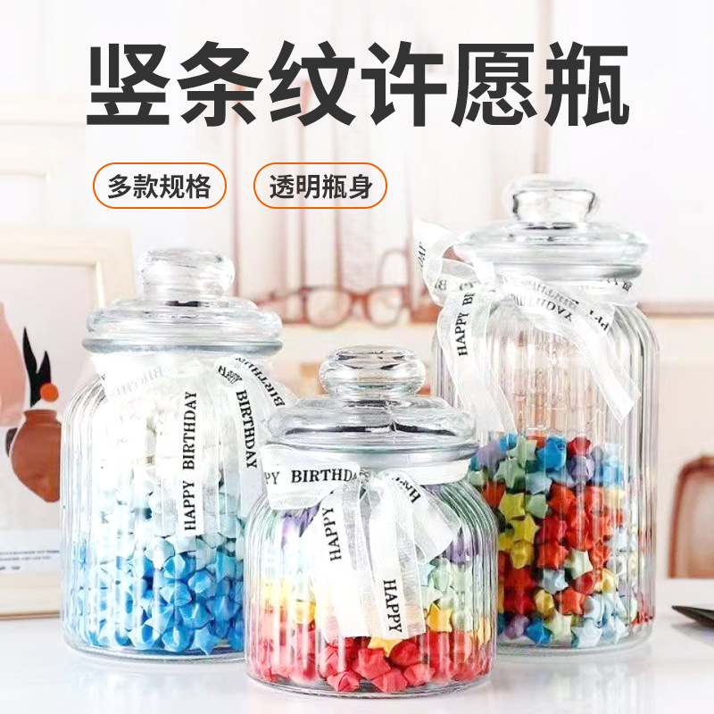 縦縞蓋付き許瓶透明ガラス缶密封缶星折り紙瓶家庭装飾瓶多規格