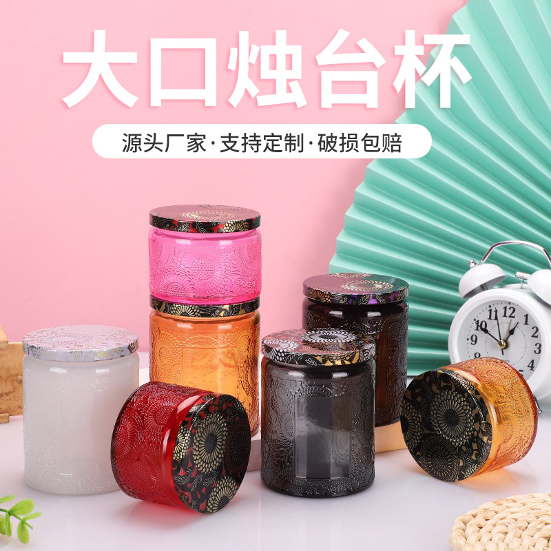 カラーレリーフキャンドルカップ蓋付きキャンドル缶大口ガラス缶香薫包装瓶ホームホテル置物