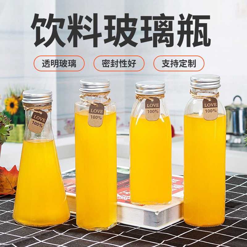 クリエイティブ飲料ボトル透明ガラス瓶ミルクティーフルーツ茶コーヒー牛乳包装瓶多規格密封瓶