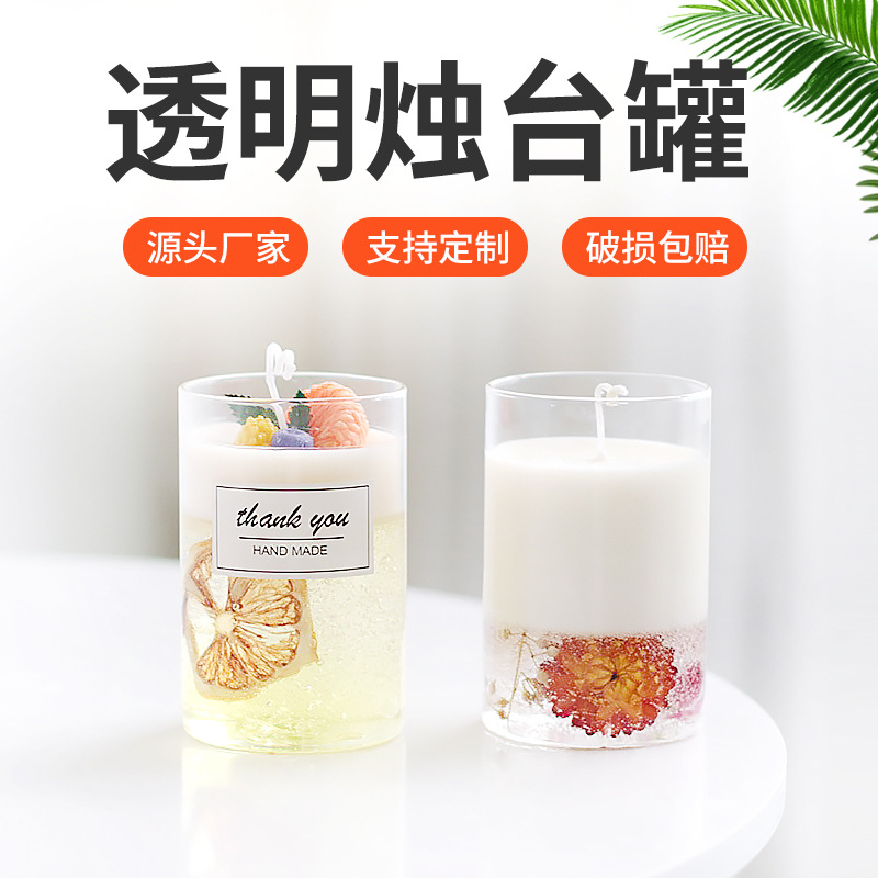 円筒形キャンドルカップ耐熱透明グラスホテル家庭キャンドル缶多規格アロマ包装空瓶