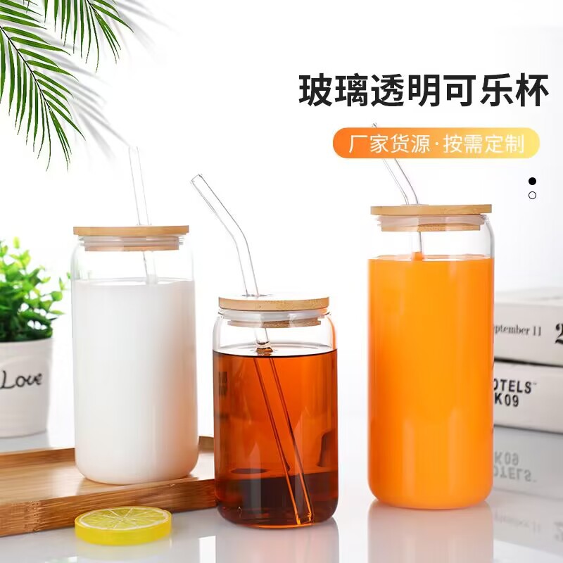クリエイティブ冷たい飲み物コーラ飲料カップミルクティーミルク竹木蓋コーヒーカップメイソンガラスコップジュースカップ