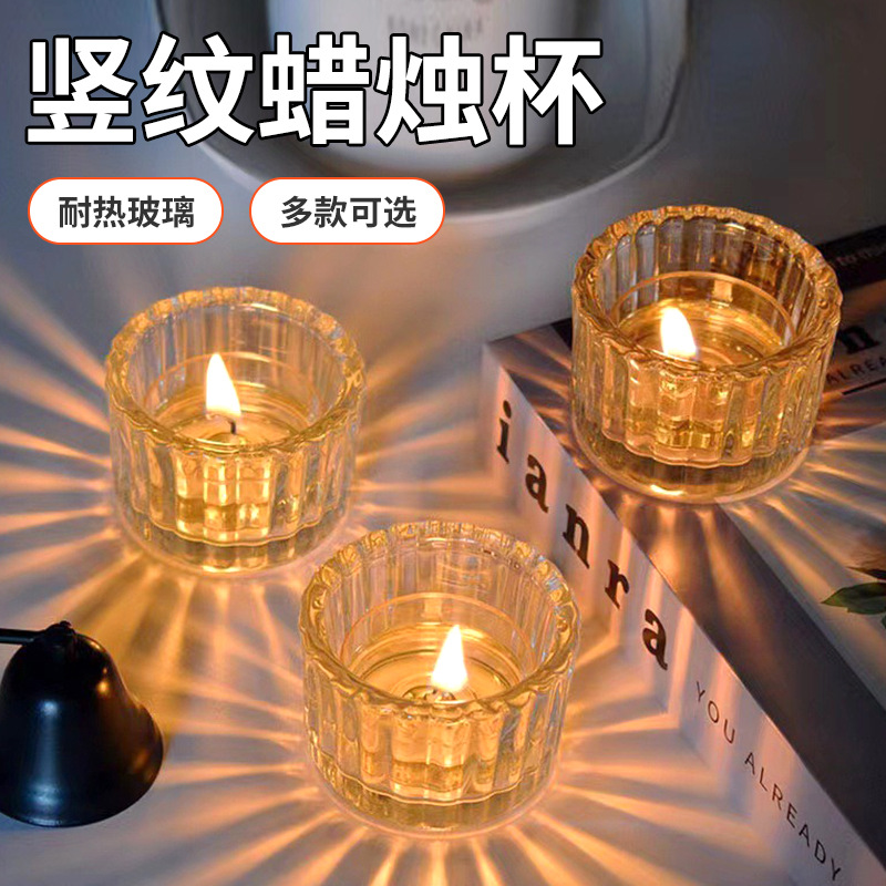 縦縞キャンドルカップが雰囲気を醸し出す燭台カップ耐熱ガラス大口缶ホテルの家庭装飾品カップ