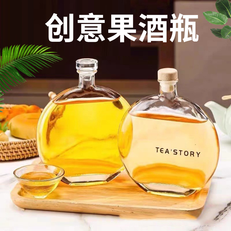 フラット円形果実酒瓶高分子キャップ密封性が良い楊梅酒瓶飲料ジュース瓶密封透明ガラス