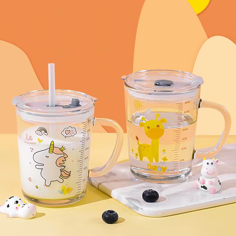 家庭用子供ストローカップ朝食ミルクカップハンドルスケールカップ高颜値グラス卸売りスポット