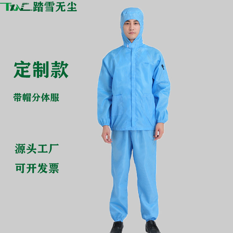 スポット卸売り静電気防止連体服クリーン服帽子分体服連体帽子ポケット付き食品防護服