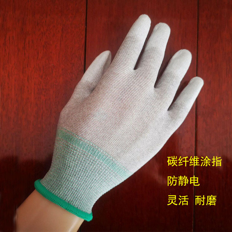 源メーカーのクリーン滑り止め耐摩耗性快適通気性労働保護手袋静電気防止ナイロン炭素繊維指