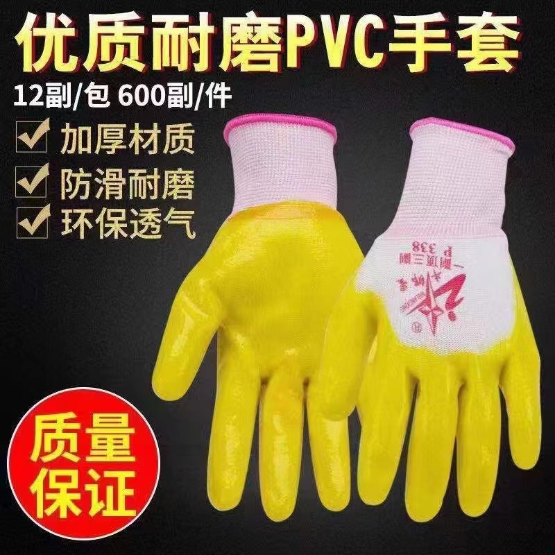 スポット卸売り牛郎星pvc工業労働保護手袋黄ゴム滑り止め耐久性男乾活p338ゴム手袋