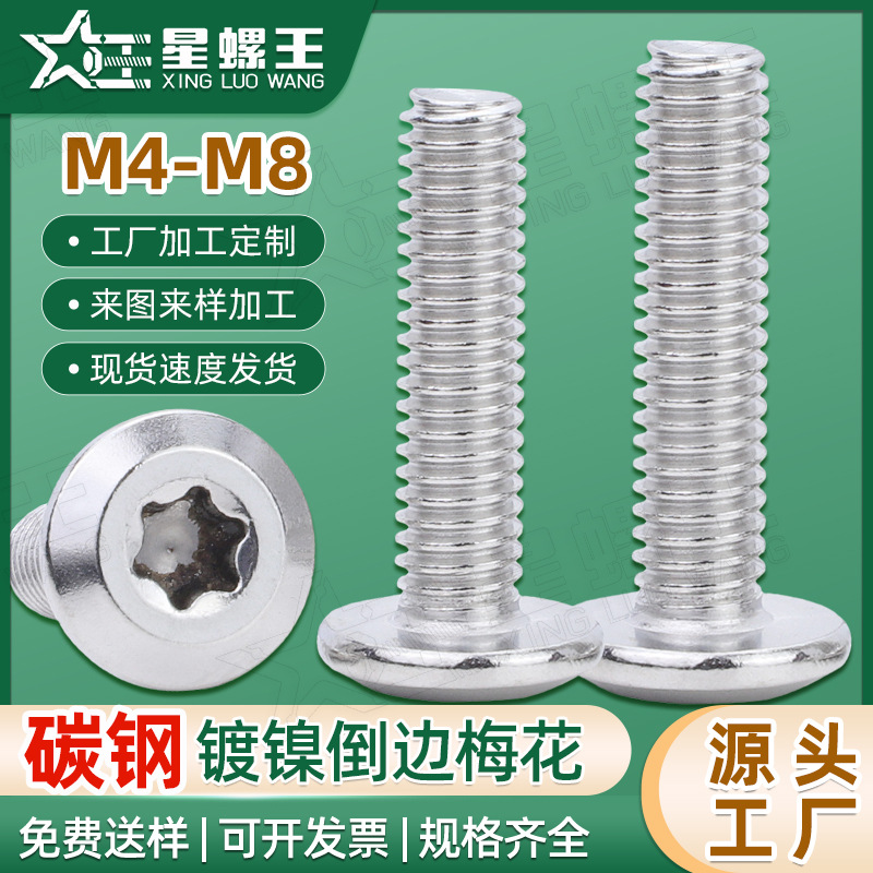 炭素鋼ニッケルメッキ平頭逆梅花ネジ家具機械シルク平丸頭ベベル梅花ネジ M5M6M8