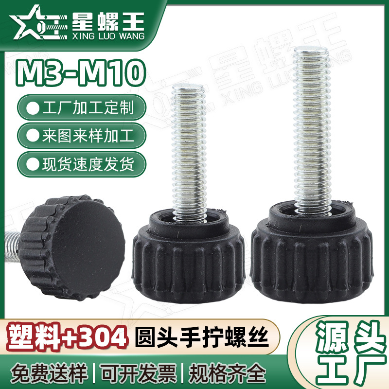 304 ステンレス鋼丸頭手ねじ丸ローレット手すりネジプラスチックヘッドプラスチックハンドル M3M6M8