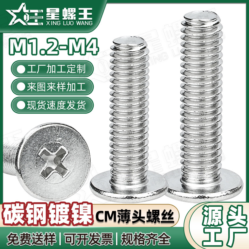 鉄ニッケルメッキCM大平頭ねじ十字溝平頭ねじ卸売り薄頭ねじM3/M4/5m/m 6