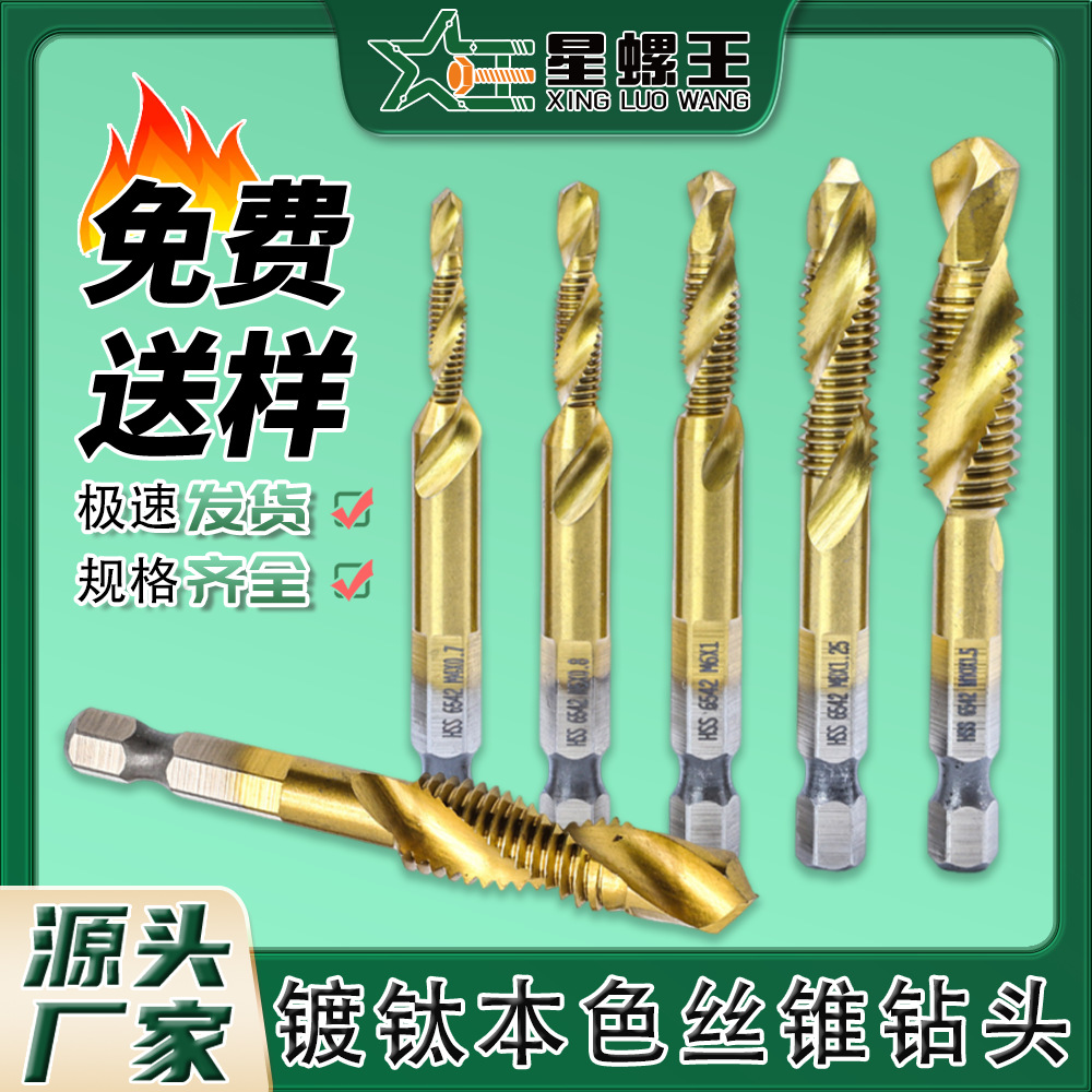 高速度鋼面取り一体機用スパイラル穴開けチタンメッキタップ ナチュラルカラータップドリル M4/M5/M6/M8