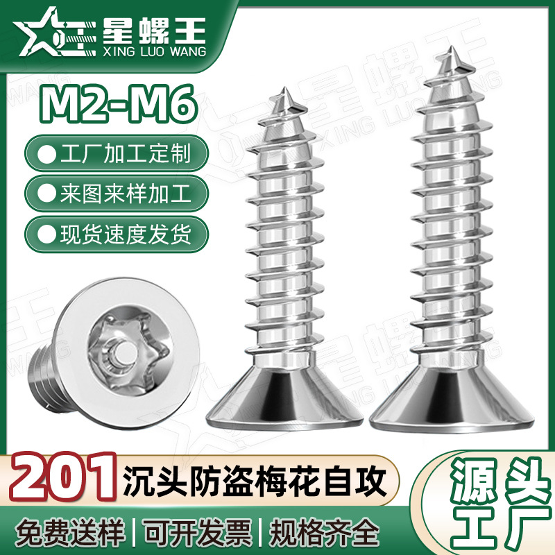 201ステンレス沈頭盗難防止梅の溝タッピングねじ平頭梅の頭タッピングねじM2/M3/M4/M5