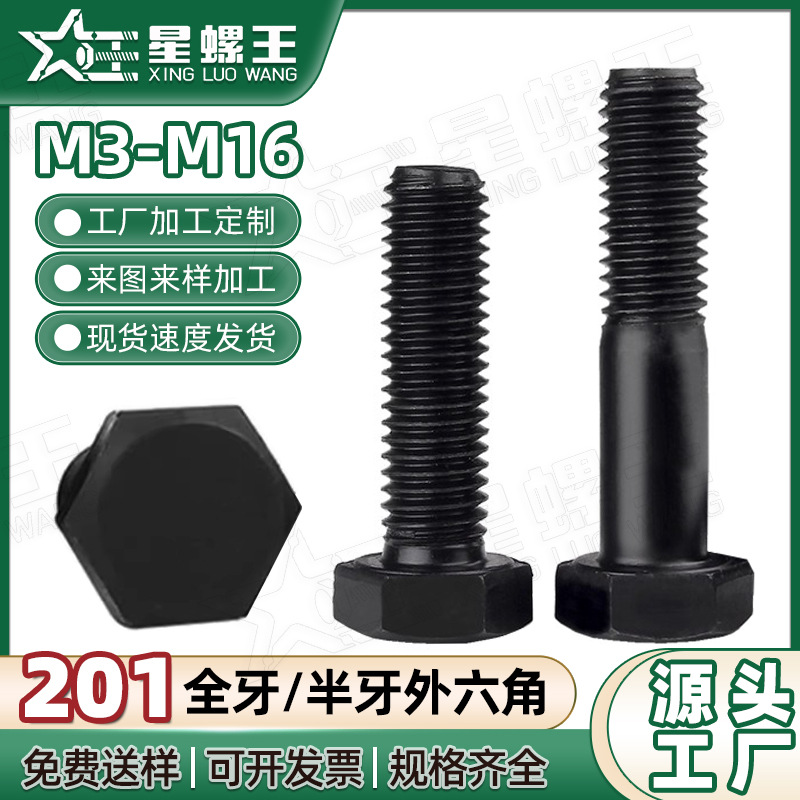 黒201ステンレス外六角ボルト全歯外六角ねじ半歯六角頭標準部品M4/M5