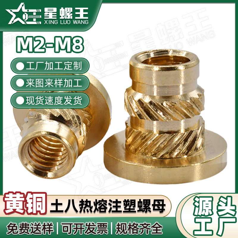 メーカー直販M2金属フランジホットメルト射出ナットM3土八インサート埋込ロール銅ナット銅花母