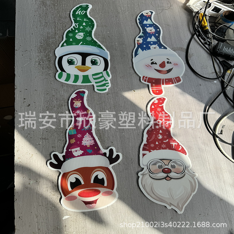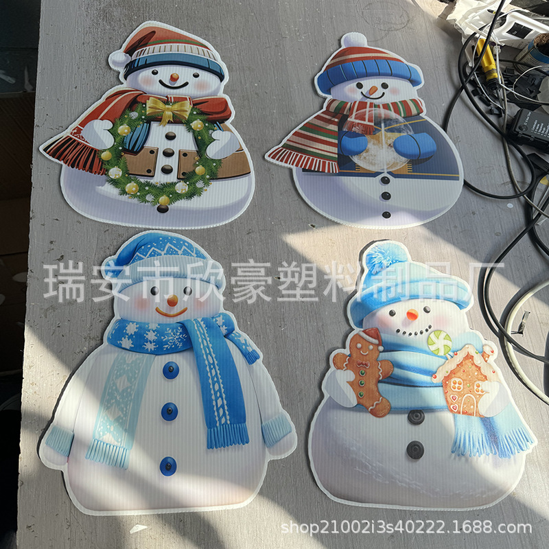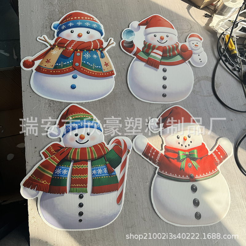 アマゾン独立駅新商品2025クリスマス雪だるまプラスチック中空板印刷芝生地挿し木装飾品
