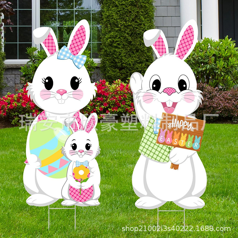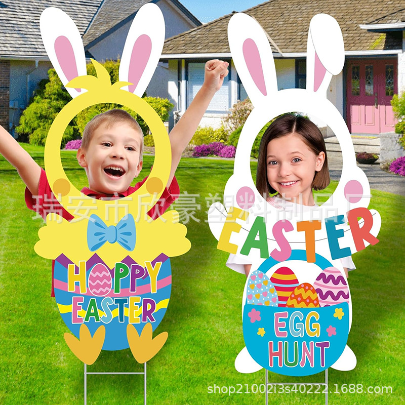 2025イースターウサギの祝日パーティー装飾プラスチック中空板カラー印刷ガーデンに写真用品を挿します。