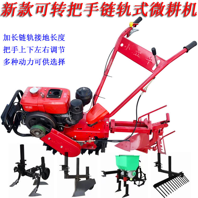 シングルチェーンレール式耕耘機ダブルキャタピラーディーゼル自走式マイクロ回転耕運機施肥草刈りトウモロコシ播種機
