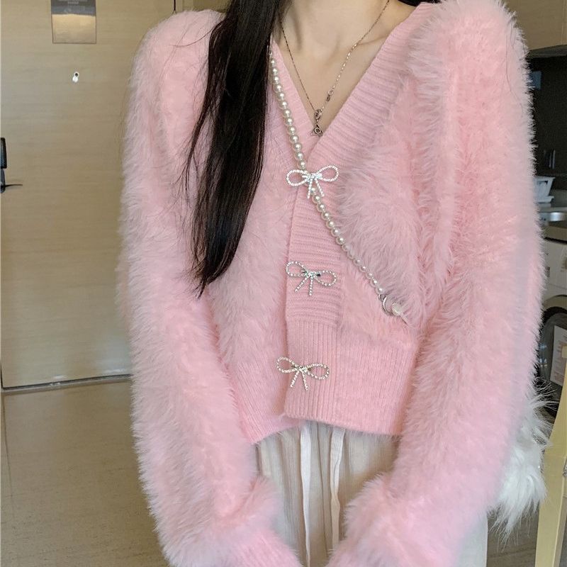 セーターレディース 2025 春と秋の新作ルーズ人気カーディガンニットミンクぬいぐるみショートコートトップ