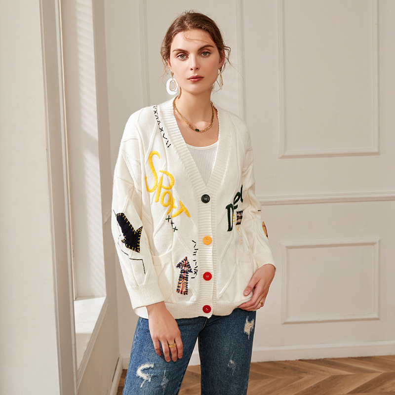 2023秋冬の新型クロスボーダーアマゾンの新商品のカーディガンのセーターのコートのゆったりしたアルファベットの刺繍のニットの卸売り