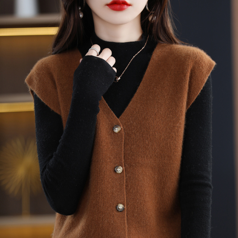 復古風馬甲女春と秋の高級感純色馬甲女型ニット韓国版文芸範馬甲卸売り