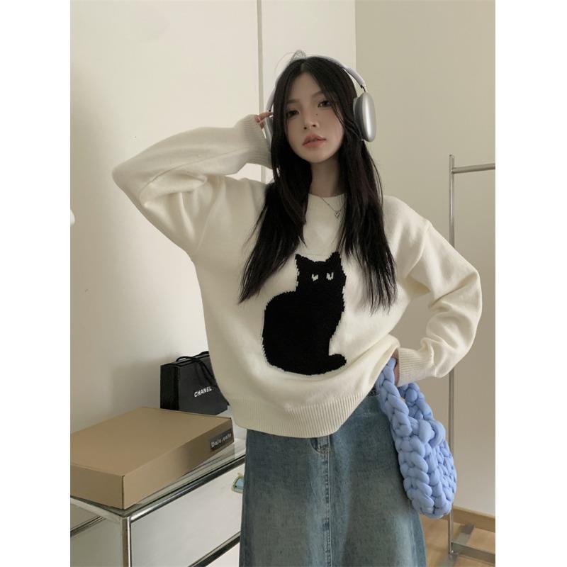 韓国東大門の甘くて柔らかいモチモチのセーターの女性の2024秋冬の新型レースの辺の長袖のゆったりしている底のニット