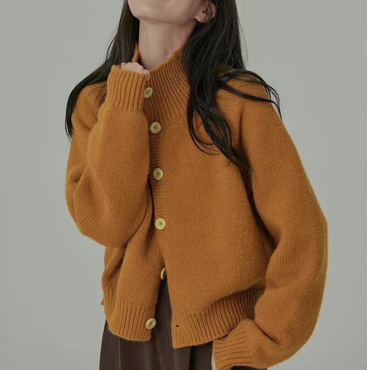 高襟の柔らかいモチモチのセーターのコートの女性の秋冬の高級感はゆったりしています。