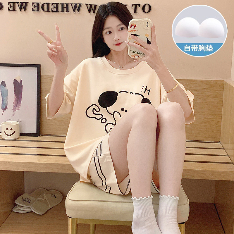 502Q? # 夏の新しいパジャマ女性模造綿胸パッド半袖ラウンドネック漫画少女甘いホームウェアセット