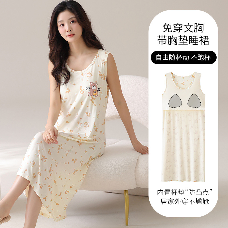 2025 夏プラスサイズモーダルナイトガウン女性の胸パッド付き夏 100kg パジャマノースリーブホーム服