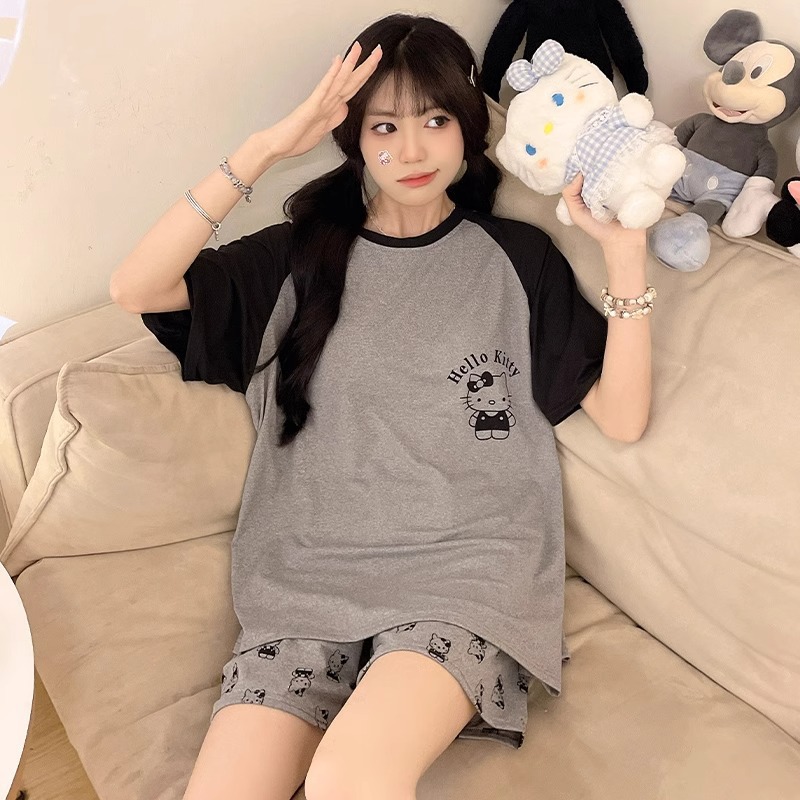 2025 新しいパジャマ女性の夏の漫画半袖ショーツ夏のインターネット有名人スタイル夏の女性のホーム服
